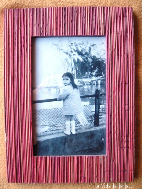Elegí esta foto para acompañar mi post por un par de razones. La primera es por que es de las pocas fotos que tengo de mi infancia. Fue en un paseo al zoológico. Es una foto típica de fotógrafo. Me acuerdo de la preparación, de mirar para atrás, agarradita de la baranda en el estanque de los patos. También me acuerdo de ese abrigo. Era amarillo. La segunda razón por la que elegí esta foto, es porque hace unos años hice el portarretratos que la contiene, reciclando unos mantelitos individuales que otros tantos años atrás me regaló mi amiga Silvi. También representa la felicidad de crear, me encantan sus colores, sus matices y cómo contrasatan con la foto en blanco y negro. Sí, soy de ESA época 😉